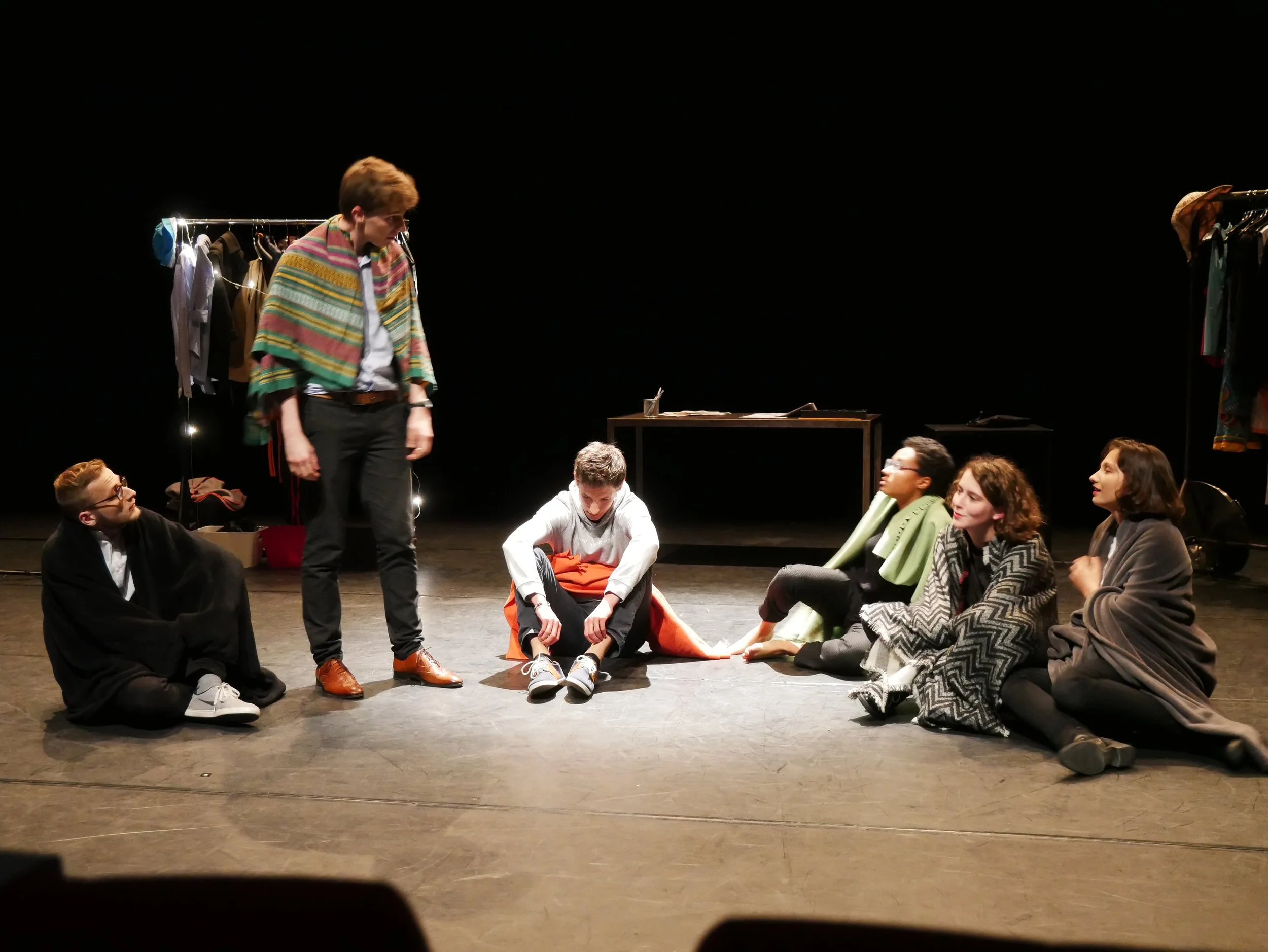 “Perhaps we are all actors without knowing it.” In politics, friendship, work, or even love... no matter what we do, there is an act of performance. Written by Hadrien Brachet and Pauline Mornet, Titre Provisoire explores the (often very fine) line between performance and reality and questions the act of theatrical creation. Fifteen short scenes follow one another, mixing all genres, from tragedy to comedy to the absurd.